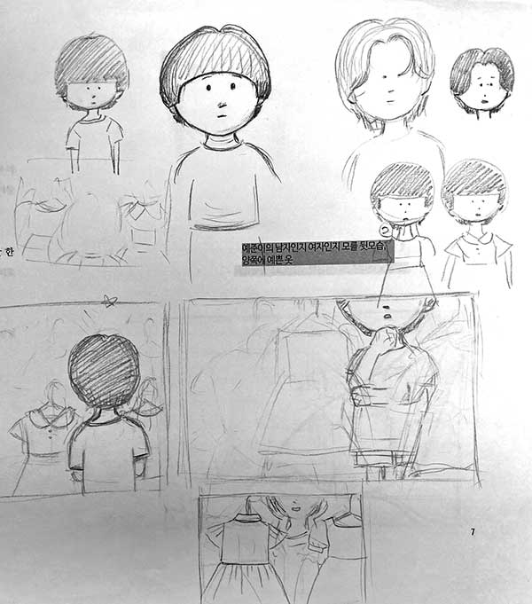 부정적인 시선 때문에 힘들어 하는 모습만 보여 주기보다 자신의 모습을 받아들이고 당당해지는 아이로 그리고 싶었습니다